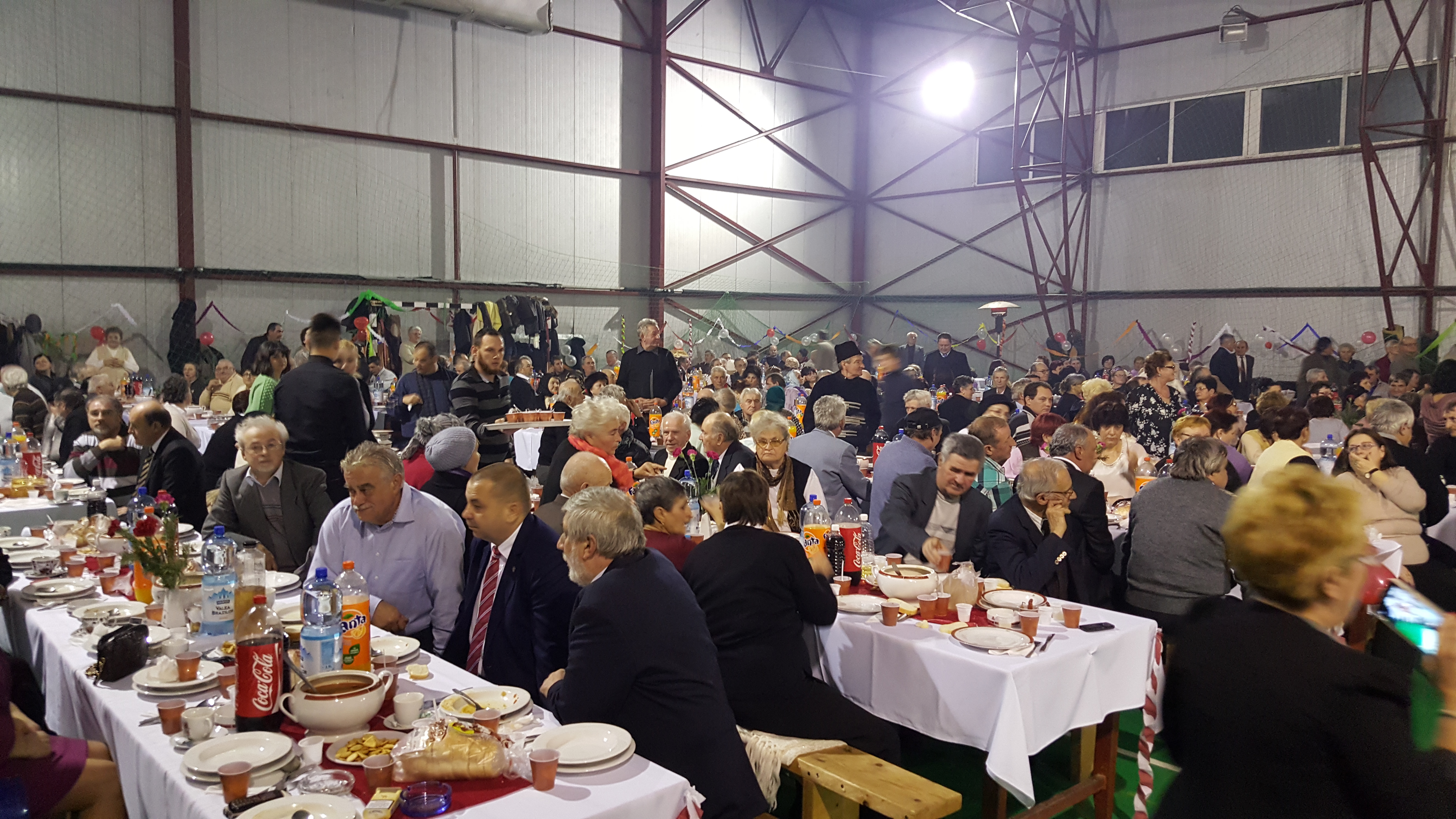 700 de vârstnici sărbătoresc într-un mod aparte Revelionul. Pentru a doua oară! La invitația primarului Luca Mălăiescu, pensionarii s-au adunat în Sala de sport din oraș, unde petrec cu mare fast debutul noului an.