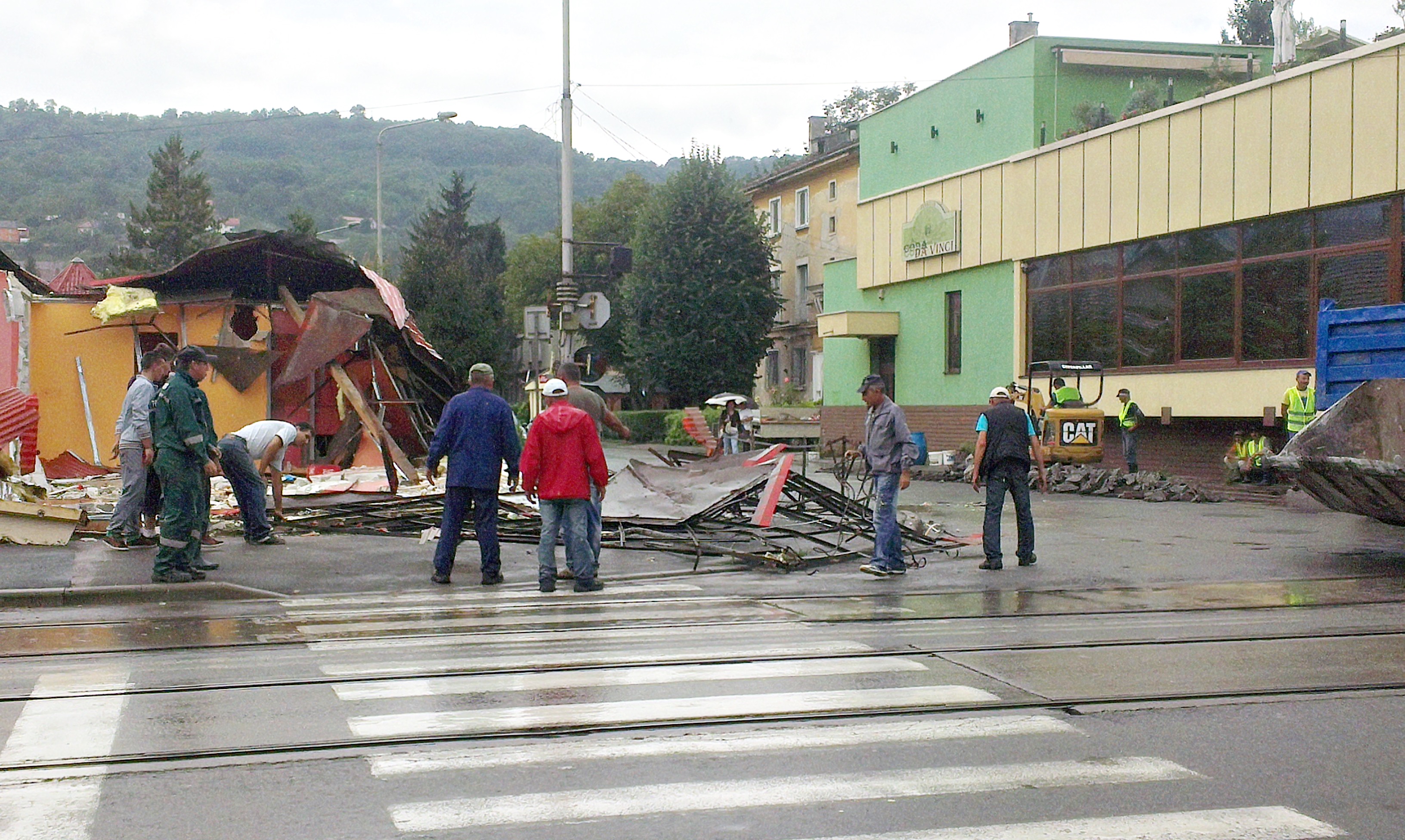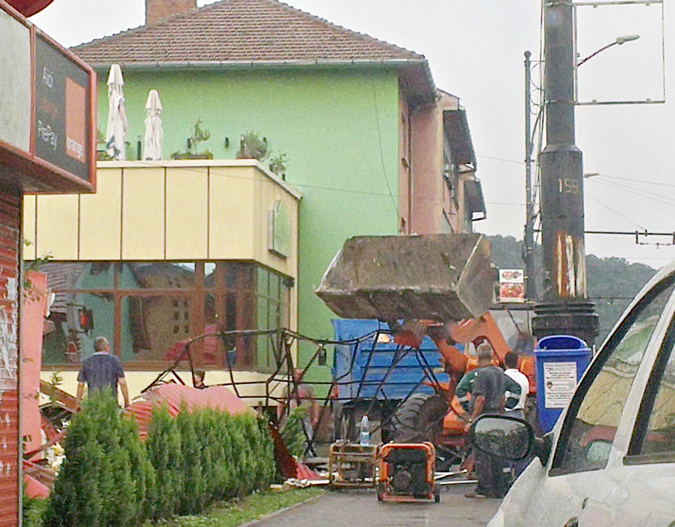 Utilajele Primăriei din Reșița au călcat în picioare unul dintre chioșcurile instalate de ani buni peste drum de stația 7 Noiembrie din Lunca Pomostului.