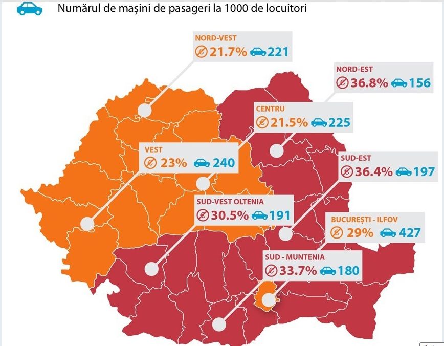 „Numărul de mașini nu corespunde foarte îndeaproape cu polarizarea socială din regiuni. De asemenea, numărul de mașini de pasageri este foarte ridicat dacă luăm în calcul și volumul de trafic rutier“, susțin autorii studiului.