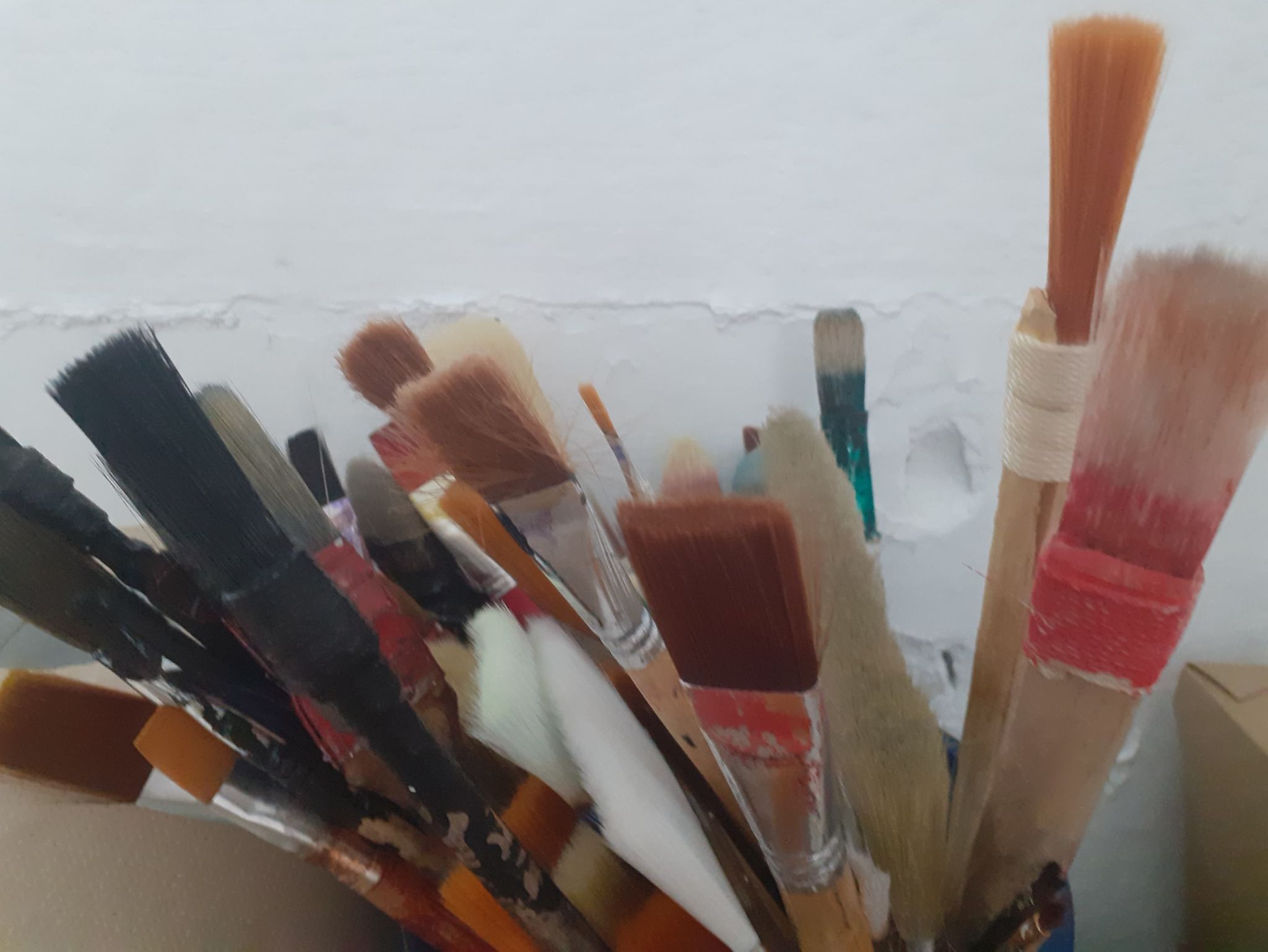 Publicul poate vedea, în clădirea fostei garnizoane, și materialele pe care le folosește Dumitru Gorzo atunci când își creează lucrările.