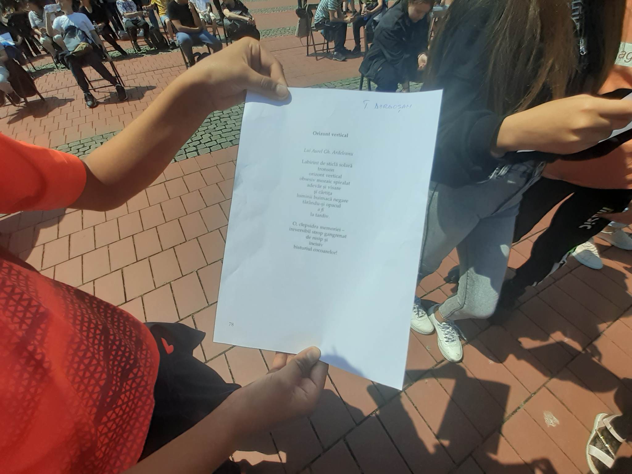 Elevi mici și mai mari, jandarmi, personalități literare sau ale vieții administrative au parcurs, miercuri, în Piața Libertății, poeme create de scriitori timișoreni dispăruți, cuprinse de Biblioteca Județeană Timiș într-o antologie. A fost o adunare în jurul cărții, pentru ca oamenii să conștientizeze ce poeți are Timișoara.
