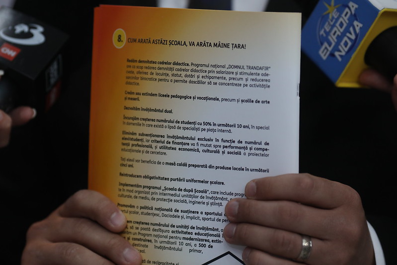 Președintele AUR a transmis un mesaj și pentru profesorii care se pregătesc de grevă generală: „Singurul sfat pe care îl am pentru profesori e să nu se lase și să obțină luni această mărire de salariu pentru că celelalte vor fi minciuni și nu vor mai fi aplicate, cum nu a fost aplicată nici grila unică de salarizare, nici în cazul polițiștilor și a altor lucrători esențiali.”
