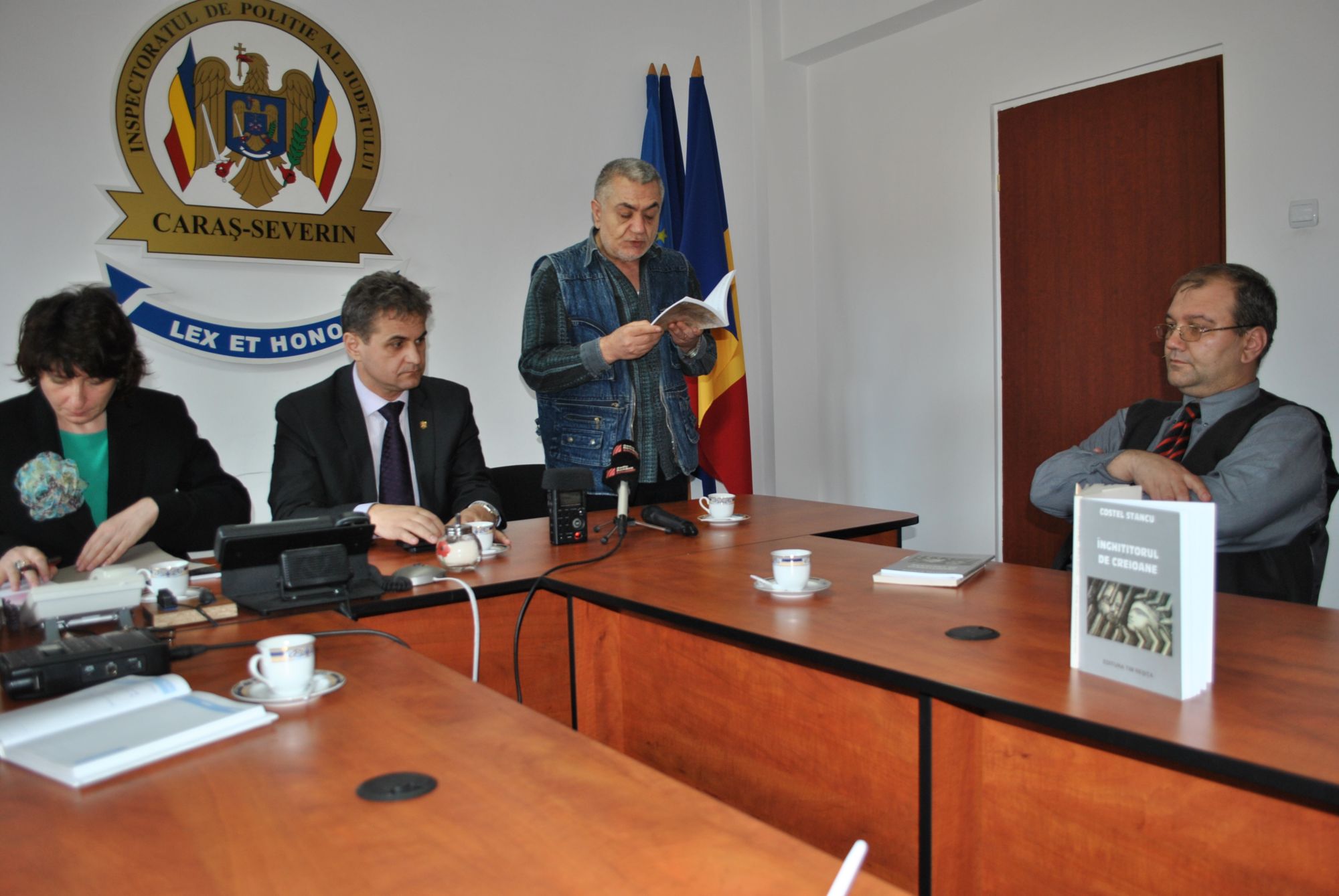 Poet încă din adolescență, cunoscut în cercurile literare locale, polițistul Costel Stancu s-a afirmat astăzi și în rândul colegilor săi, fiind recunoscut de toți ca cel mai mare poet din Reșița. Adunați la sediul Poliției pentru a vorbi despre opera sa au fost atât colegi polițiști, critici literari locali, dar și oaspeți de la București.