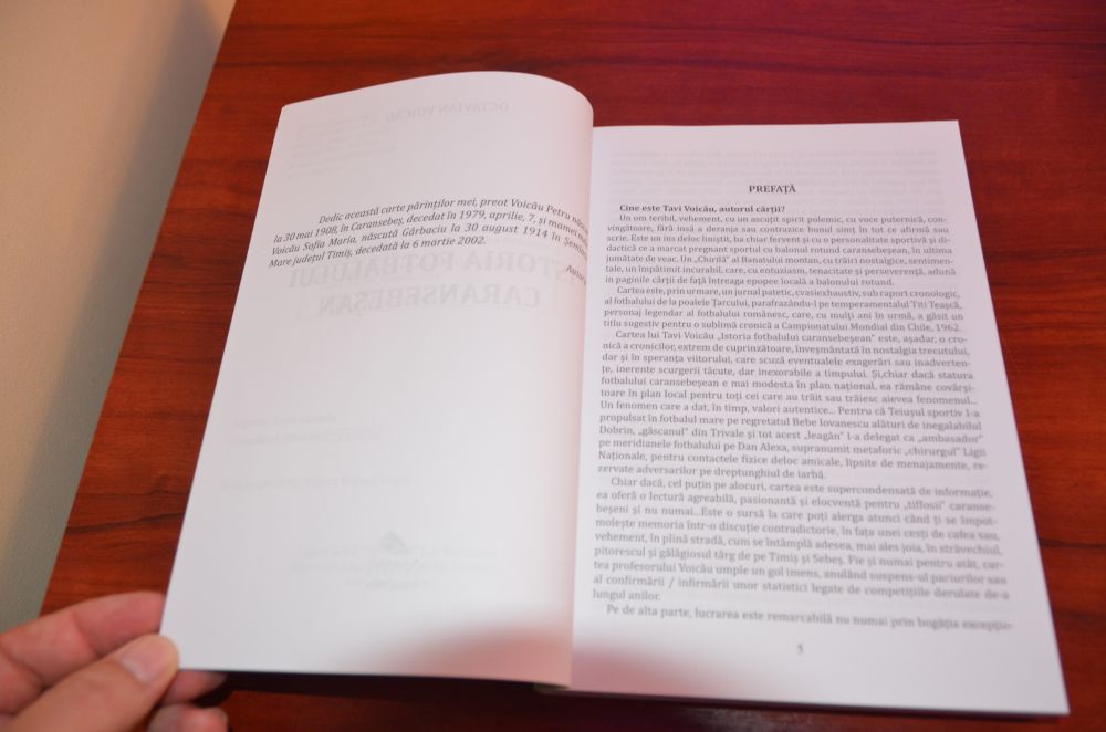 ,,Am lucrat la această carte aproape 7 ani. (…) Este extrem de importantă pentru istoria fotbalului caransebeșean, pentru că este singura carte care adună cronologic toate evenimentele fotbalistice din 1920 până în prezent. (…) Aș vrea ca FC Caransebeș să aibă un parcurs bun pe viitor, iar eu continui să le scriu pe toate”, a declarat profesorul Octavian Voicău, cu prilejul evenimentului de aseară.