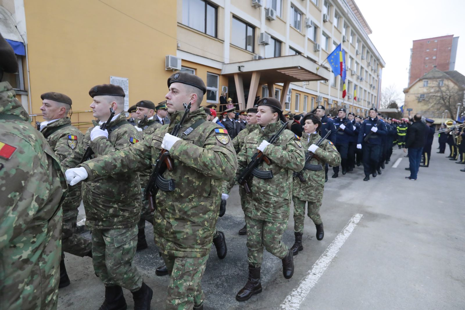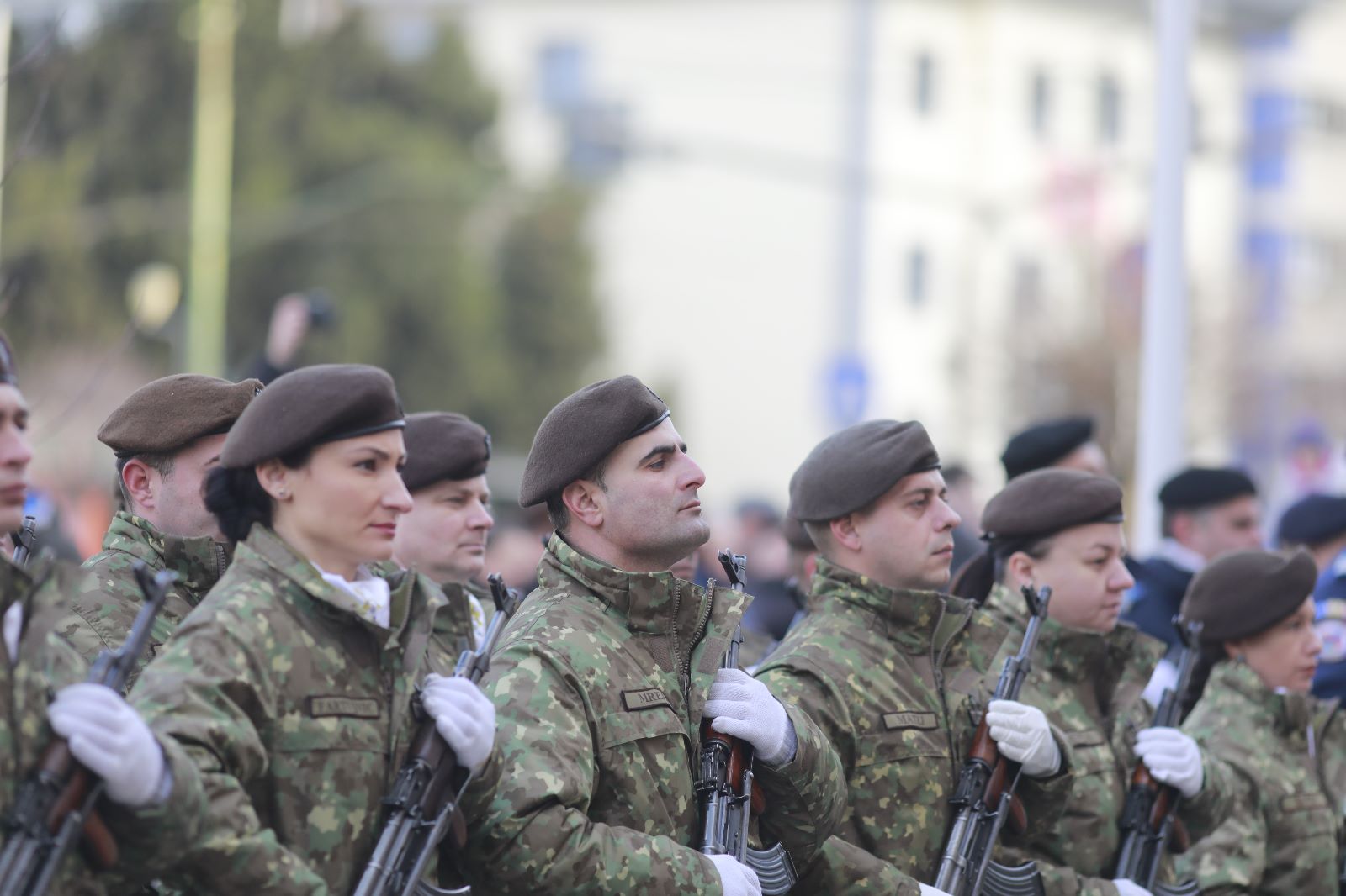 Zeci de timișoreni s-au adunat pe bulevardul Take Ionescu ca să vadă ceremoniile și defilarea detașamentului de onoare.