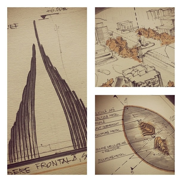 Întregul proiect a fost făcut pe metoda veche, cu acuarelă și hârtie, fără versiune digitală. Explicația vine din partea arhitectului reșițean care, după 20 de ani în care s-a folosit de tehnica sofisticată, a decis că ideea de arhitect presupune de fapt fațade colorate de mână și schițe în tuș pe notesuri, iar acest stil de proiectare l-a insuflat și celor doi învățăcei.