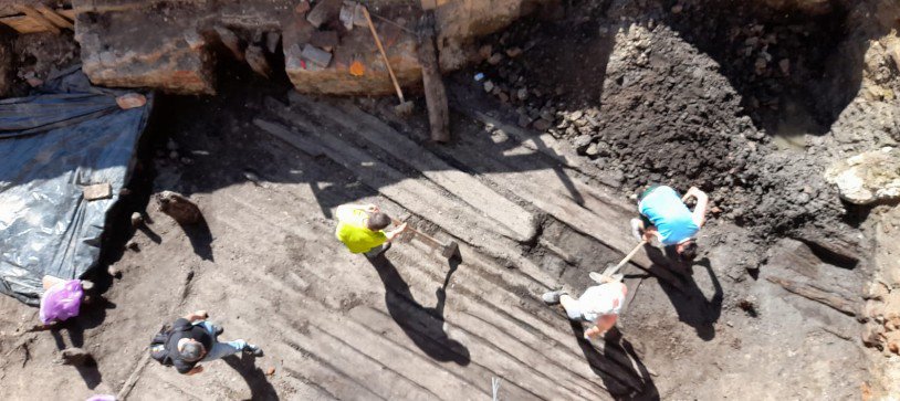 Între aceste două locuințe, arheologii au identificat și o stradelă de lemn, foarte bine conservată, orientată pe direcție NV-SE. Podelele stradelei erau așezate pe trei rânduri de grinzi, iar între grinzi existau două rânduri de stâlpi pentru susținerea stradelei. Între grinzi, sub stradelă, ca umplutură s-a folosit un strat gros de nisip și pietriș, pentru drenarea apei.