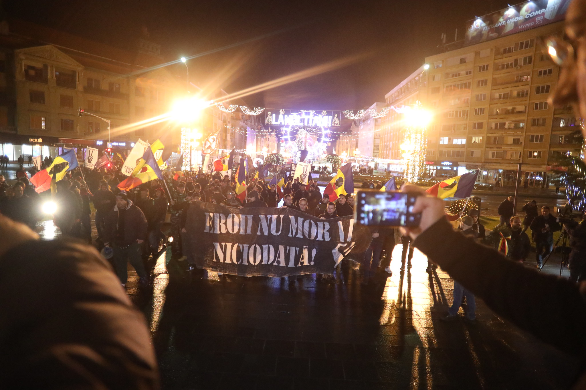 În marșul lor, tinerii au scandat „Eroii nu mor niciodată!”, „Cinste lor, cinste lor eroilor!” și „Libertate!”.