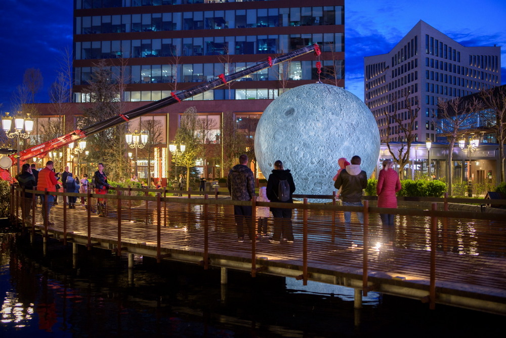 „Museum of the Moon”, lucrarea artistului britanic Luke Jerram este prima din seria sa dedicată corpurilor cerești și le oferă vizitatorilor oportunitatea extraordinară de a descoperi Luna în toată splendoarea detaliilor ei minunate, nu doar partea pe care o vedem mereu pe cer. Macheta măsoară 7 metri în diametru și corespunde unei scări de 1:500.000, ceea ce înseamnă că fiecare centimetru corespunde în realitate unei distanțe de 5 kilometri pe Lună. Instalația mai poate fi vizitată în Iulius Gardens, până pe 10 aprilie.