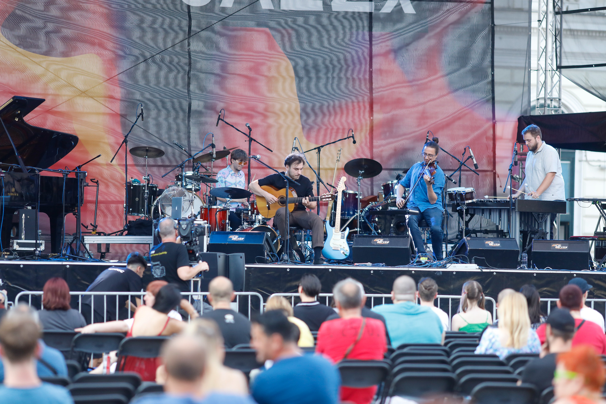 Prima seară a Festivalului JAZZx a adunat în fața scenei din Piața Operei sute de pasionați de „experimente muzicale și mixuri creative”, după cum au prezentat organizatorii evenimentul. Ediția din acest an, cu numărul 10, are parte de o scenă principală – în fața Operei Naționale din Timișoara, și un spațiu special dedicat jam session-urilor.