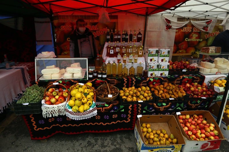 Expozanți din județele vecine Timișului sunt prezenți până sâmbătă la Timișoara pentru a readuce în mijlocul orașului atmosfera culegerii și valorificării roadelor de la sat. De la specialități din carne de porc, brânzeturi, miere, până la fructe BIO, specialități pe bază de alcool, făcute din fructe specifice sezonului și dulcețuri – toate sunt pregătite pe rafturile comercianților de la CCIAT.