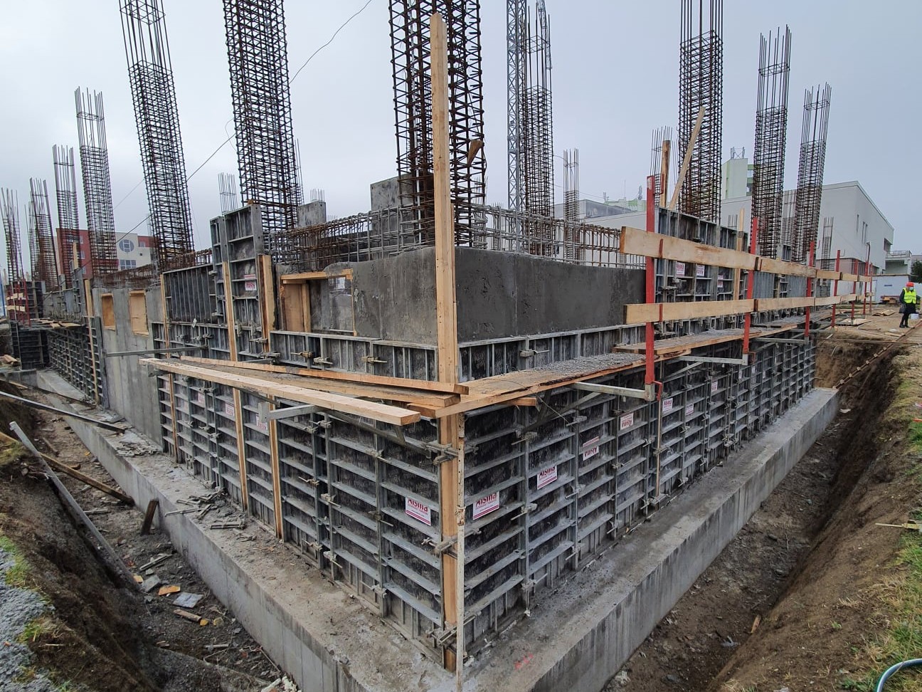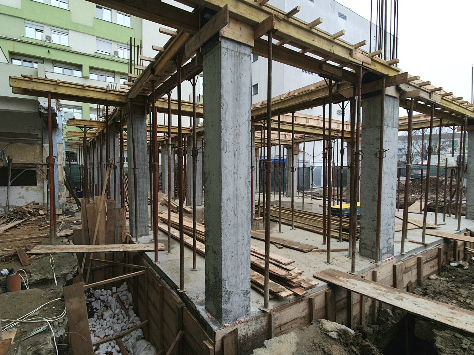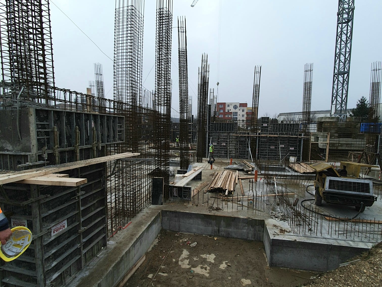 La Unitatea de Primiri Urgențe a Spitalului Județean din Timișoara muncitorii continuă să lucreze și în perioada lunilor de iarnă. Deja au turnat placa peste subsol și au montat stâlpii de rezistență ai primului nivel. Acum, ei se vor concentra pe lucrările în interiorul subsolului.