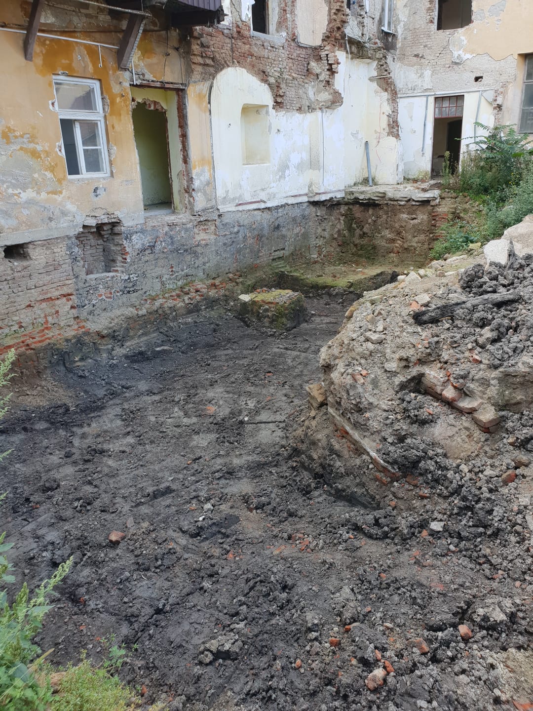 De la reluarea lucrărilor, muncitorii au pus în siguranță o fundație, iar constructorul așteaptă raportul arheologic astfel încât să poată începe lucrările la acoperiș.