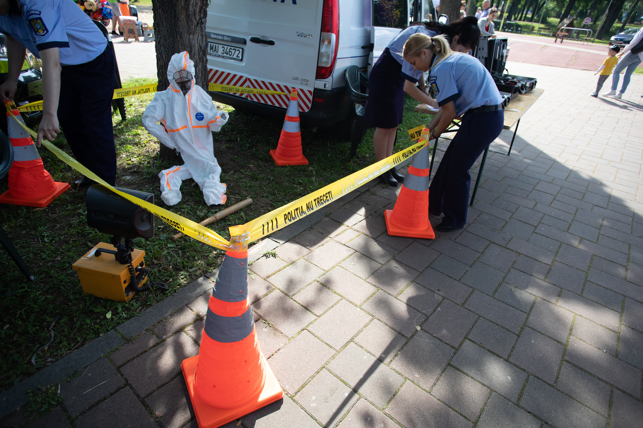 Distracția a început dis de dimineață, în Parcul Copiilor din Timișoara. Copiii au urmărit spectacolele micilor dansatori pe scenă, s-au întrecut la fotbal și au vizitat standurile polițiștilor locali unde au putut vedea mai multe echipamente din dotarea agenților.