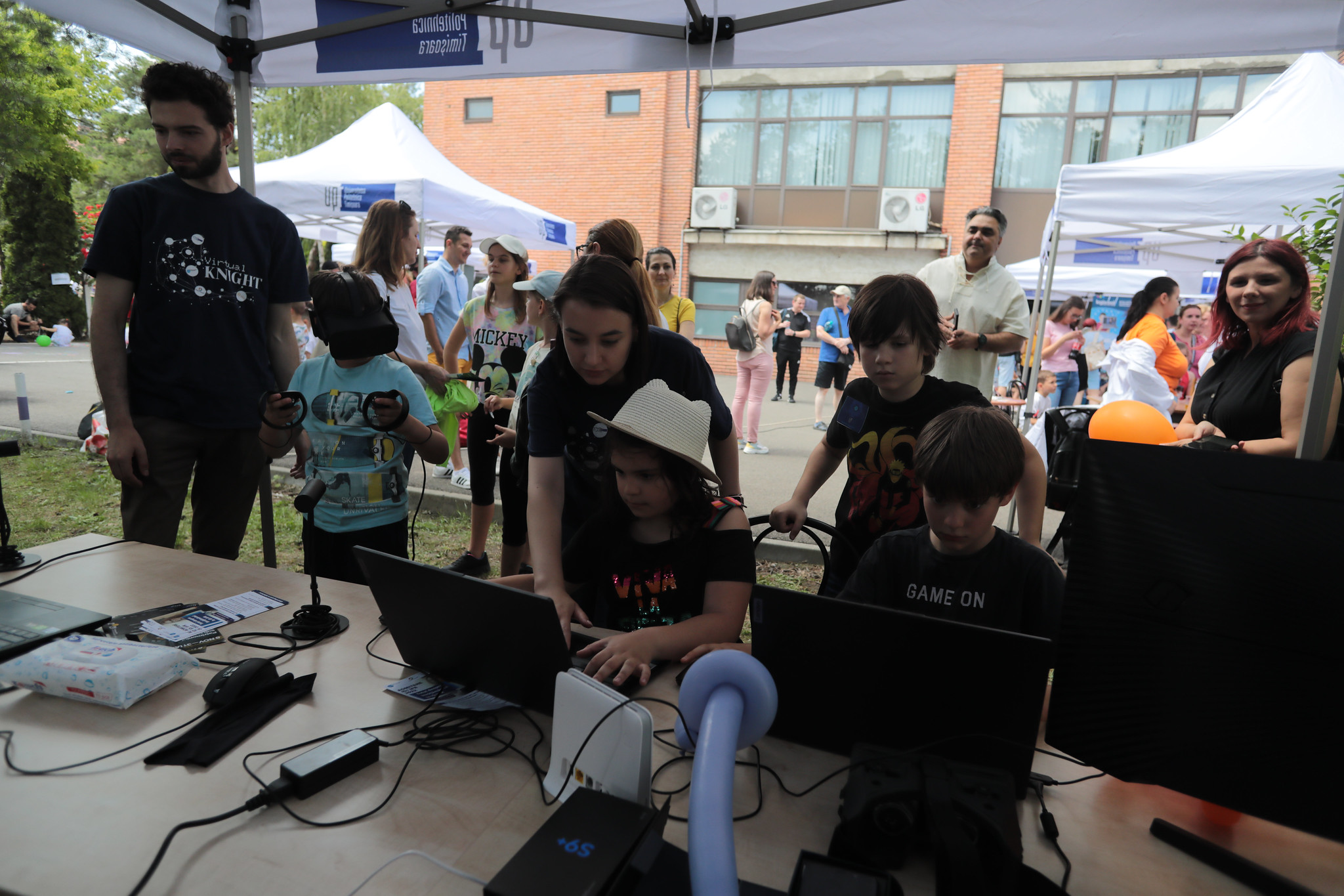 Mii de copii au ieșit, miercuri, din casă, însoțiți de părinți sau bunici și au participat la activitățile organizate în mai multe parcuri din oraș, fie la Consiliul Județean Timiș, ori în campusul Universității Politehnica din Timișoara, unde ore în șir s-au jucat, au dansat și s-au distrat pe cinste învățând să mânuiască roboți sau să deslușească tainele ingineriei.