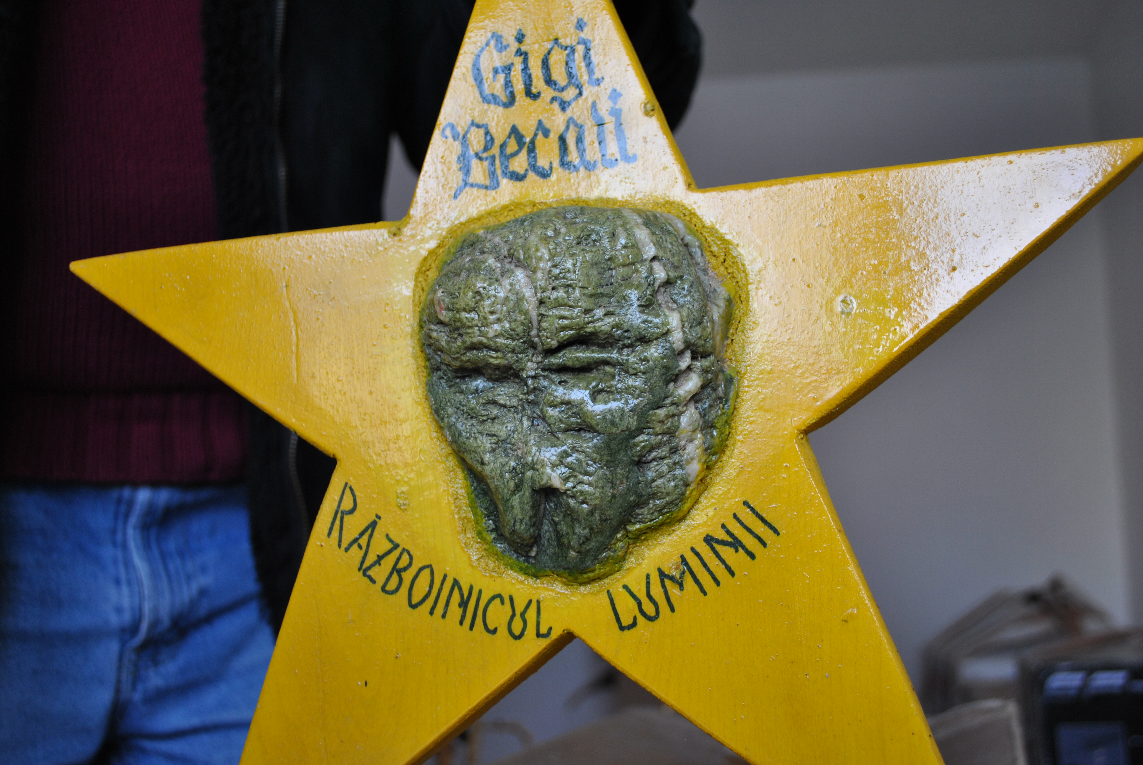 După modelul vedetei de filme pentru adulți, artistul a mai descoperit o altă piesă ce l-a dus cu gândul către patronul Stelei: „Am găsit o piatră, natura a sculptat-o de zici că e figura lui Gigi Becali. Eu am tăiat-o și am amplasat-o pe o stea. Mi-ar plăcea să ajungă la el, nu pe bani, ci cadou, pentru că îi este dedicată lui. Eu o păstrez și poate într-o zi va ajunge la el. Este steaua lui Becali”, a povestit artistul.