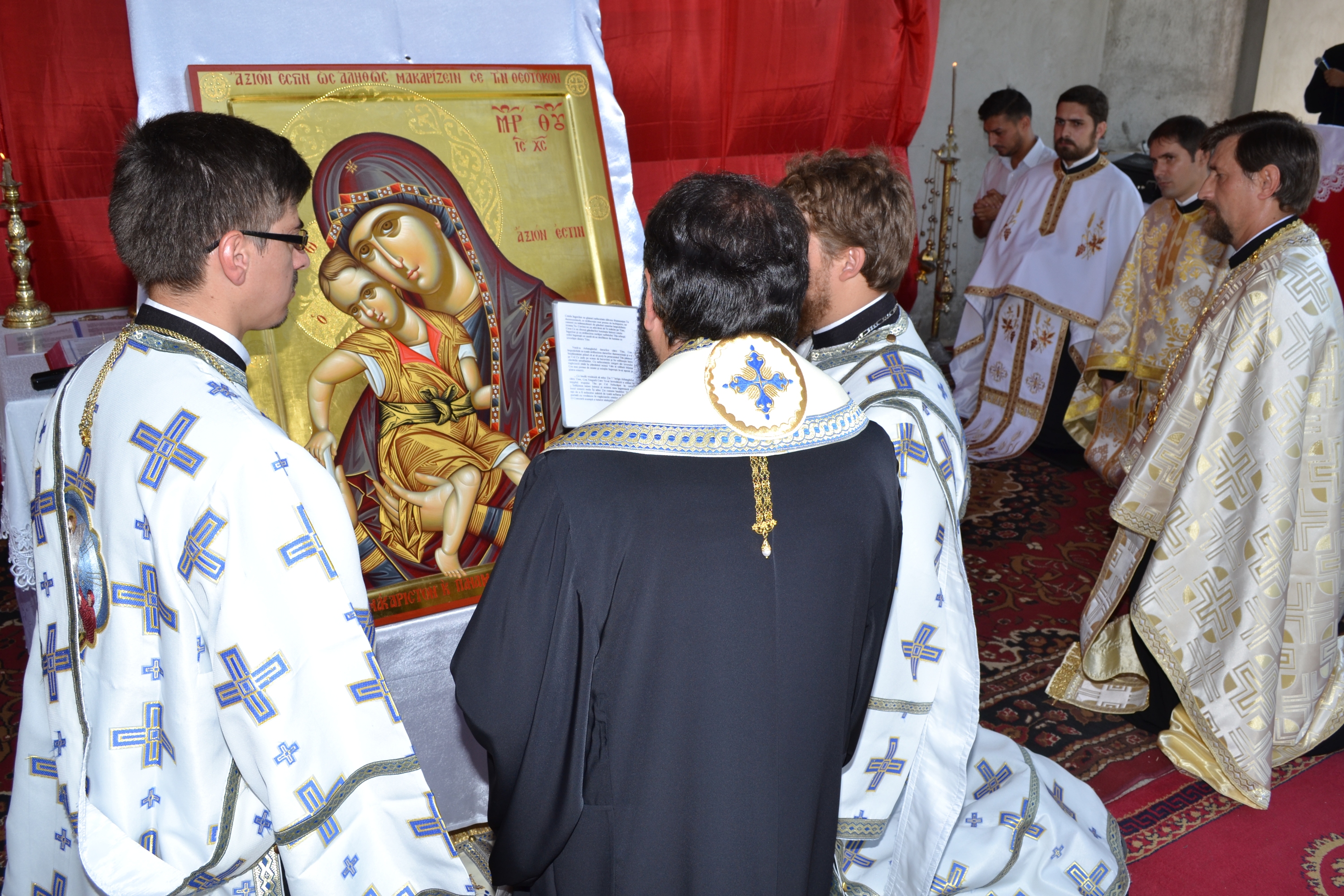 Icoana Maicii Domnului a fost pictată în Sfântul Munte Athos şi a fost adusă de o delegaţie de clerici şi credincioşi din Clisura Dunării şi va fi depusă în demisolul bisericii aflate în construcţie cu hramul „Adormirea Maicii Domnului”.