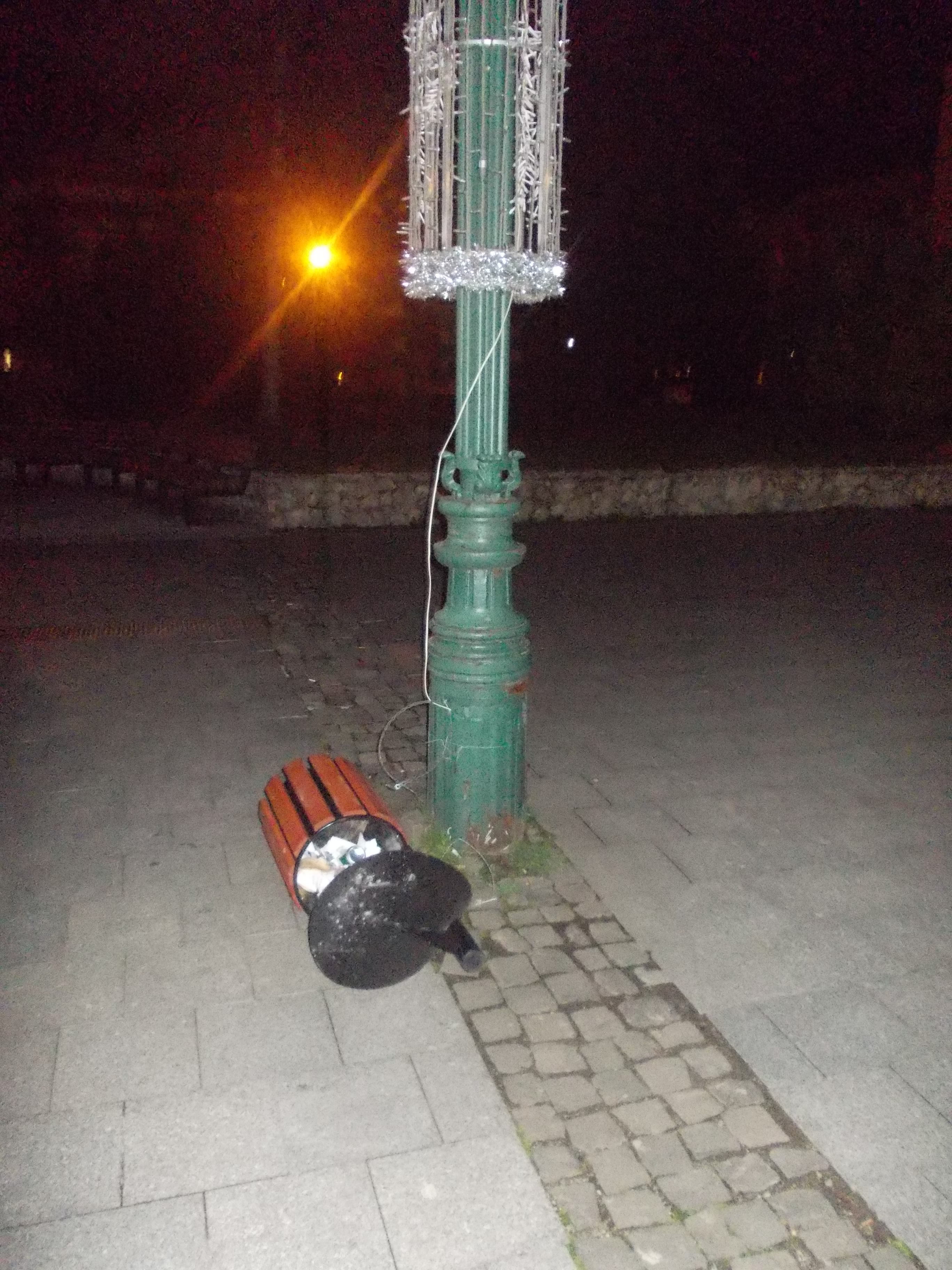 Polițiștii locali „au surprins, în jurul orelor 02.40, un tânăr în timp ce lovea cu piciorul coşurile de gunoi amplasate pe stâlpii de iluminat public provocând distrugerea acestora. După identificarea persoanei în cauză la sediul instituţiei, constatându-se că numitul B. Robert-Laurenţiu cu vârsta de 17 ani, domiciliat în Reşiţa, este minor, poliţiştii locali au contactat părinţii acestuia, iar în prezenţa mamei sale au întocmit proces-verbal de constatare a contravenţiei.