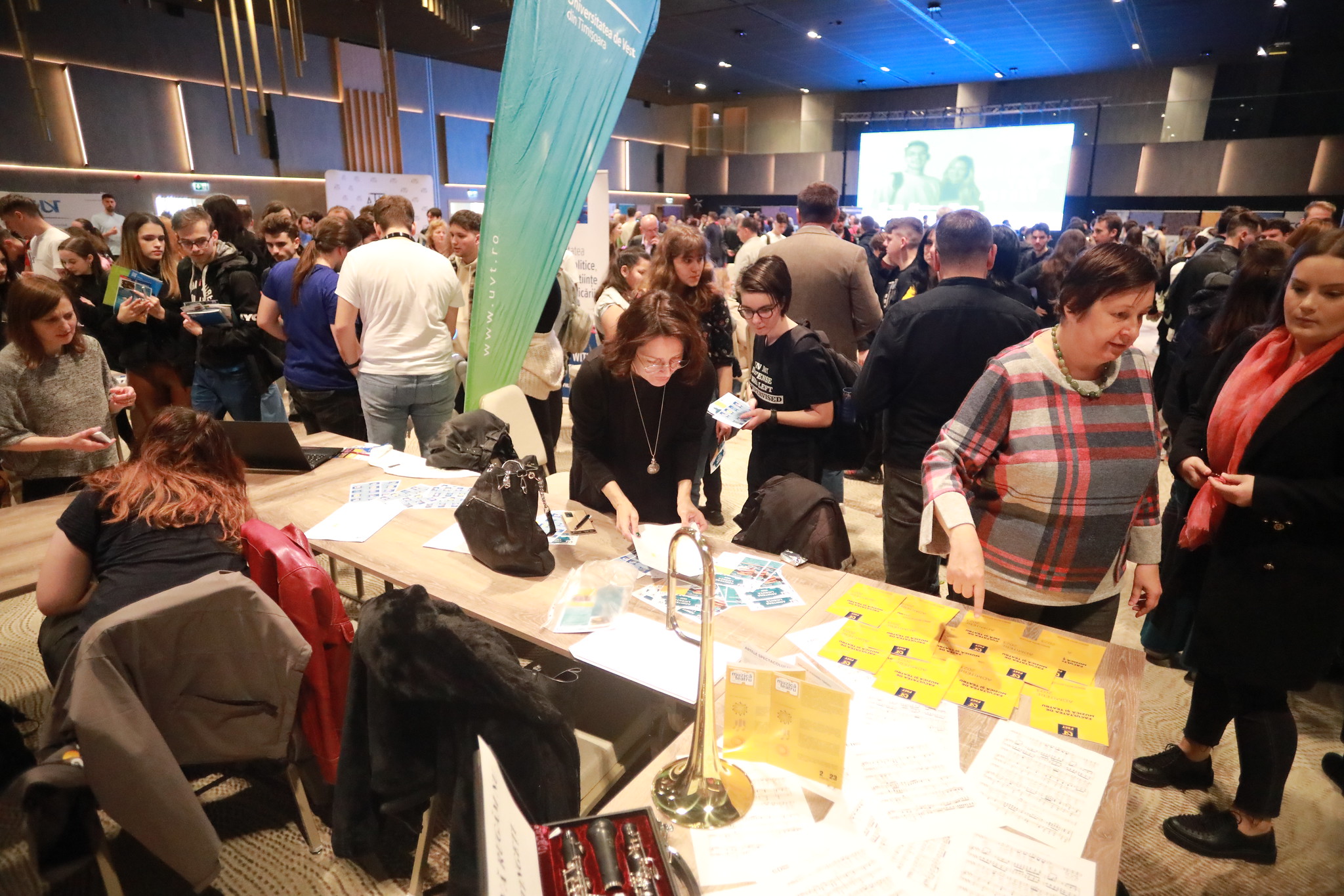 Mii de elevi s-au înghesuit astăzi la standurile târgului educațional organizat pentru prima dată de Alianța Timișoara Universitară. Târgul e locul în care toate facultățile din oraș își prezintă ofertele, încercând să îi atragă pe viitorii studenți să rămână să studieze în țară.