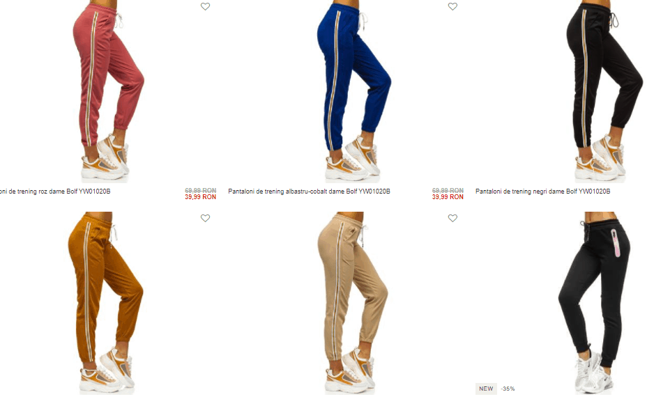 Puteți alege pantalonii comozi pentru un outfit lejer, pe cei mai eleganiț pentru munca pe care o urmați, sau puteți alege pantalonii care se potrivesc în orice împrejurare. Acest articol este unul indispensabil în majoritatea ținutelor pe care le abordăm. Dacă ai observat un articol preferat, îl poți adăuga la favorite, iar apoi să continui shopping-ul online- la final, toate produsele selectate vor apărea în același loc. Produsele au și un regim de filtrare în funcție de ceea ce vă doriți, pentru a face căutarea mai ușoară.