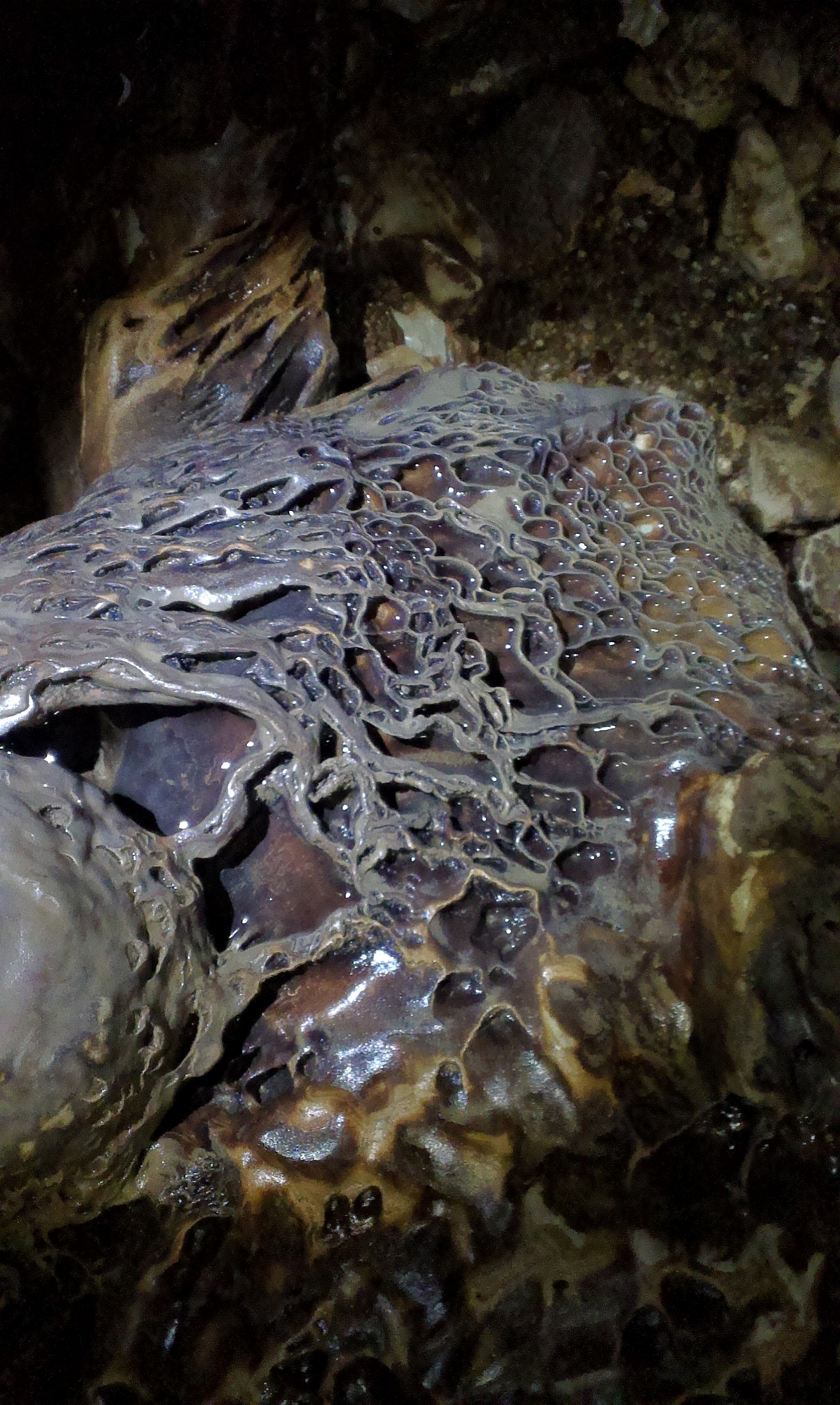 Prezența formațiunilor stalagmitice nu este sesizată foarte des, asta mai ales pentru că de multe ori, peșterea este deranjată de torente violente. Cu toate acestea, galeriile largi și nisipoase, rocile sculptate de apă și imensitatea lumii de sub deal, uimește dincolo de orice formațiune stalagmitică.