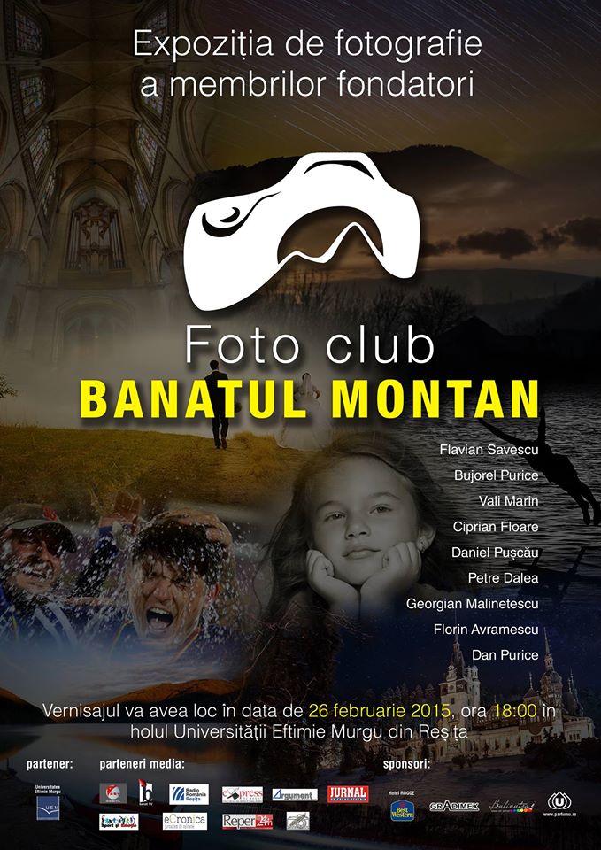 Lansarea oficială a Asociaţiei ,,Foto Club Banatul Montan” va avea loc joi, 26 februarie 2015, de la ora 18:00, în holul Universităţii ,,Eftimie Murgu” din Reşiţa, unde va avea loc Expoziţia de fotografie a membrilor fondatori.