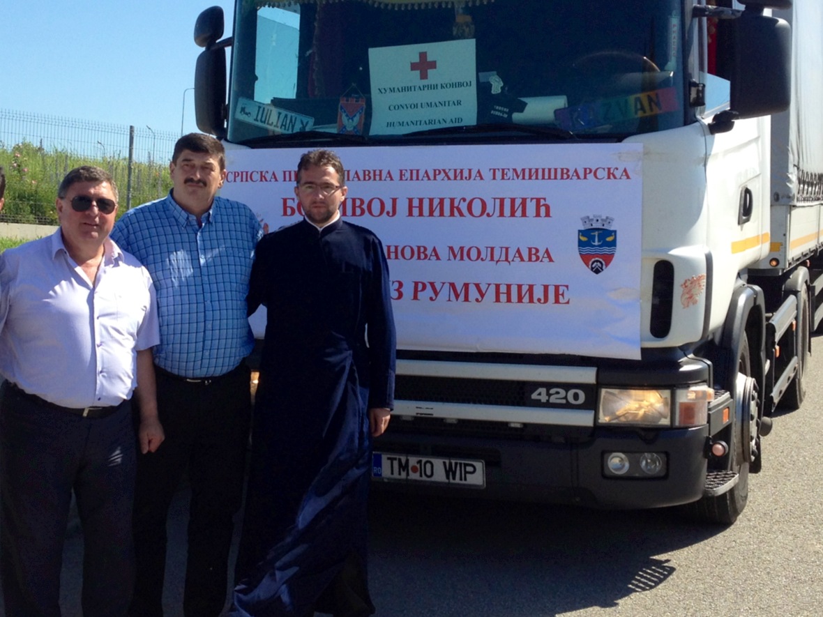 Unul dintre cele două tiruri a fost încărcat cu apă plată și minerală, ajutoare finanțate de omul de afaceri cu influență în Clisura Dunării, Nicolici Borivoi. Cel de-al doilea transport conținea alimente neperisabile, produse sanitare, detergent și produse de uz zilnic, toate acestea fiind adunate de bisericile ortodoxe sârbe în parteneriat cu primăria din Moldova Nouă.