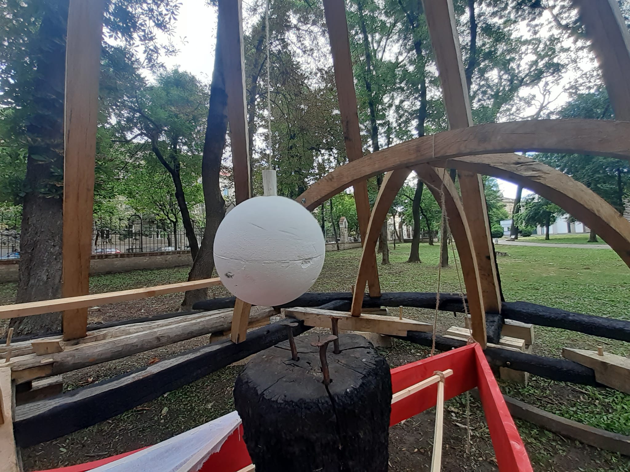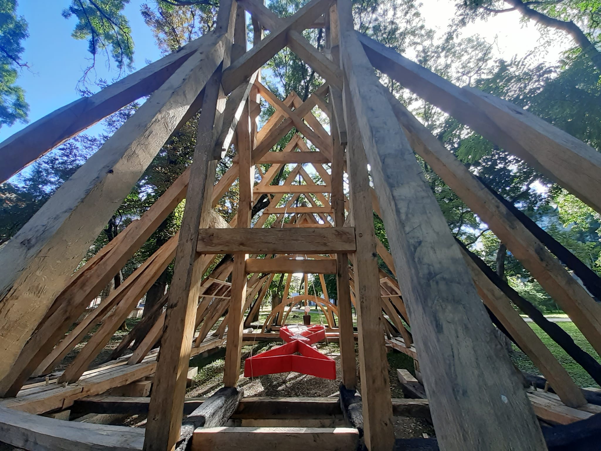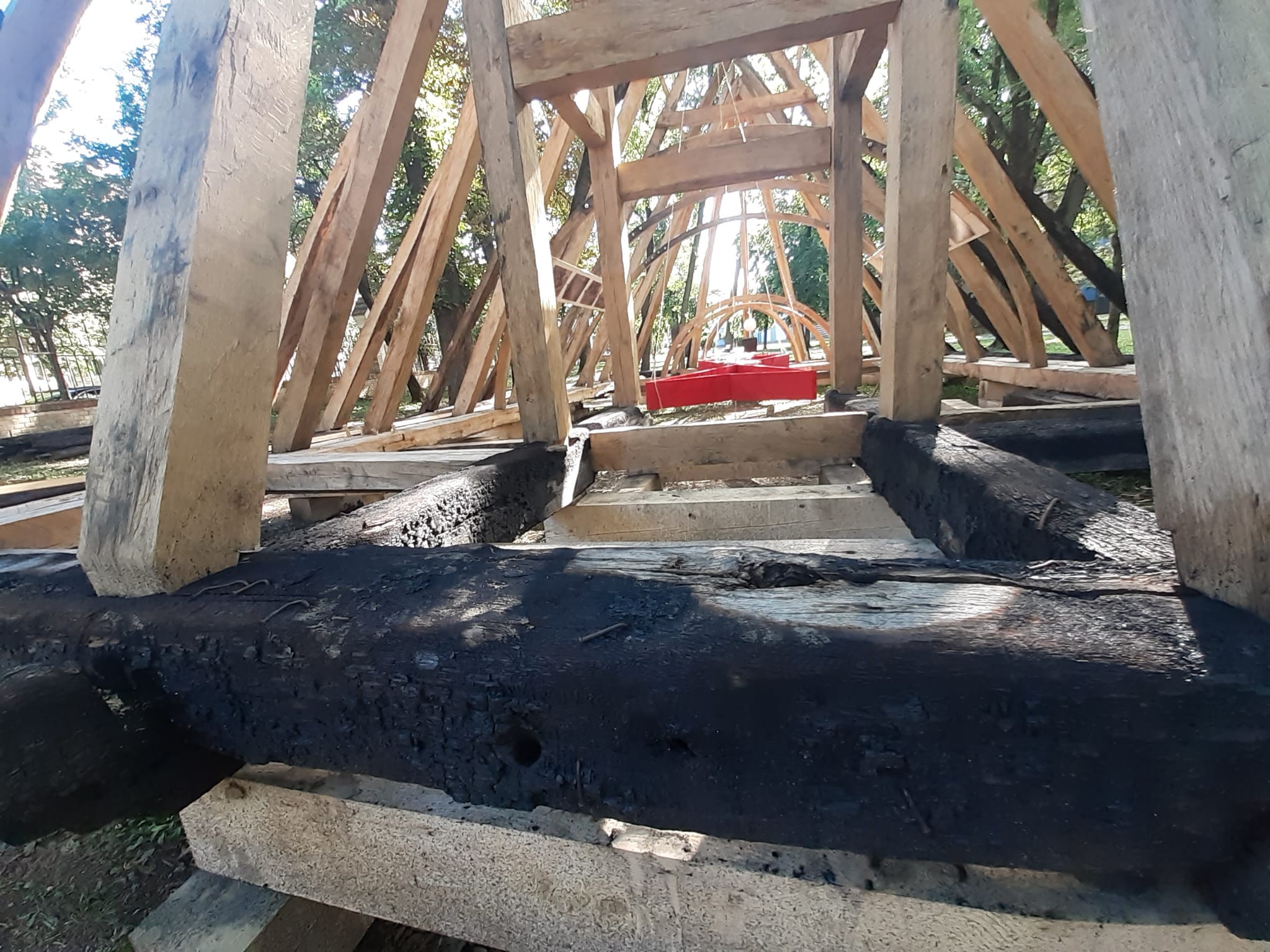 Proiectul, pus la cale în cel mai vechi parc al Timișoarei, se desfășoară în jurul structurii șarpantei și turnului bisericii de lemn de la Povergina, mistuite de flăcări în urmă cu 8 ani, reconstituite în luna iunie.