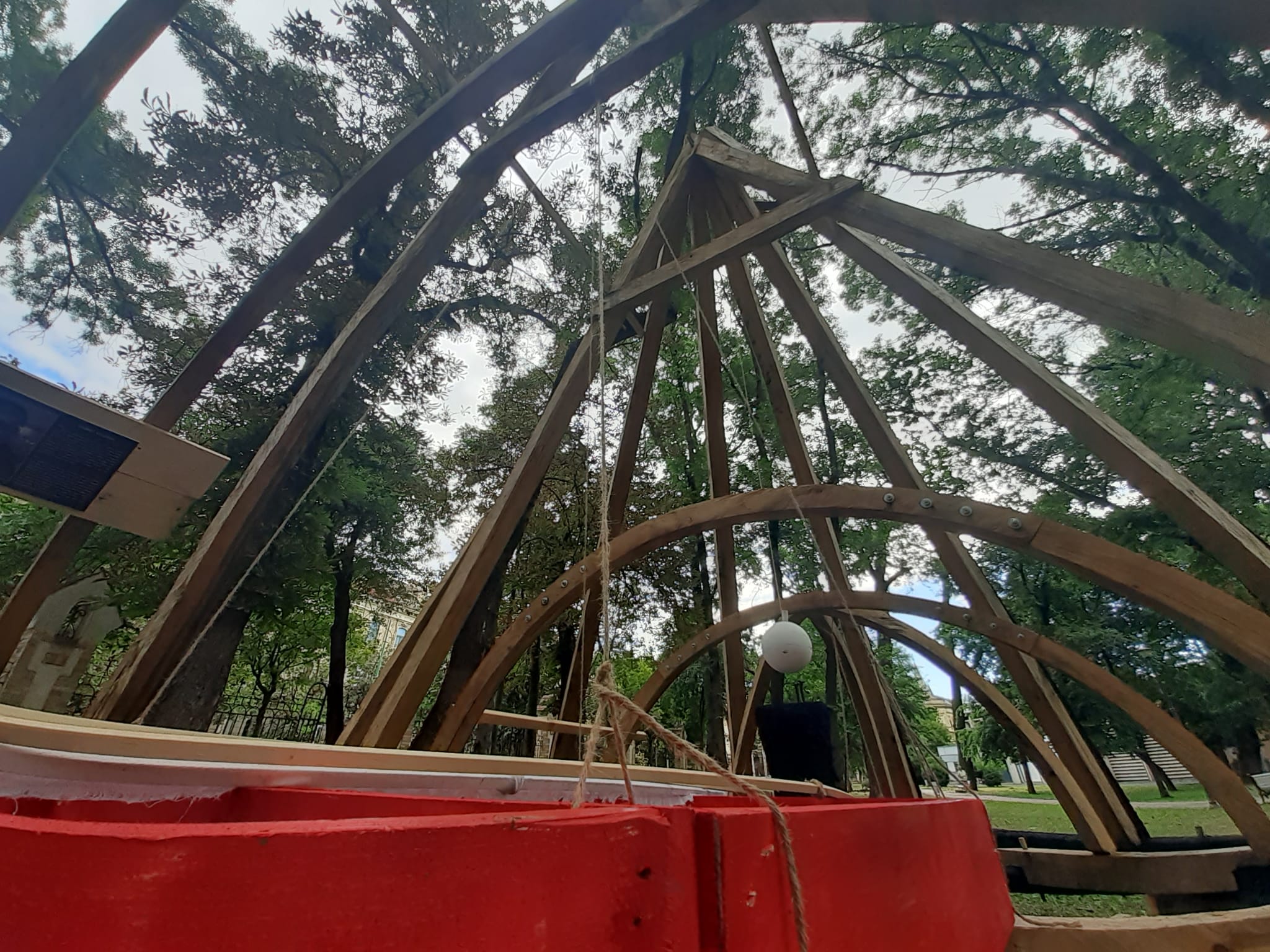 Instalațiile din interiorul șarpantei bisericii de la Povergina vor putea fi vizitate până în 15 august în Parcul Regina Maria. Tot aici, Asociația „de-a arhitectura” a organizat două ateliere educative pentru copii, în care micuții au fost ghidați să realizeze case tradiţionale, în miniatură, din lemn și lut. De asemenea, în preajma structurii de lemn, meşterii dulgheri care au lucrat la asamblarea şarpantei au ţinut ateliere demonstrative de dulgherie tradiţională pentru public. La finalul proiectului, după 26 august, ansamblul şarpantei va fi montat definitiv pe biserica de lemn arsă de la Povergina.