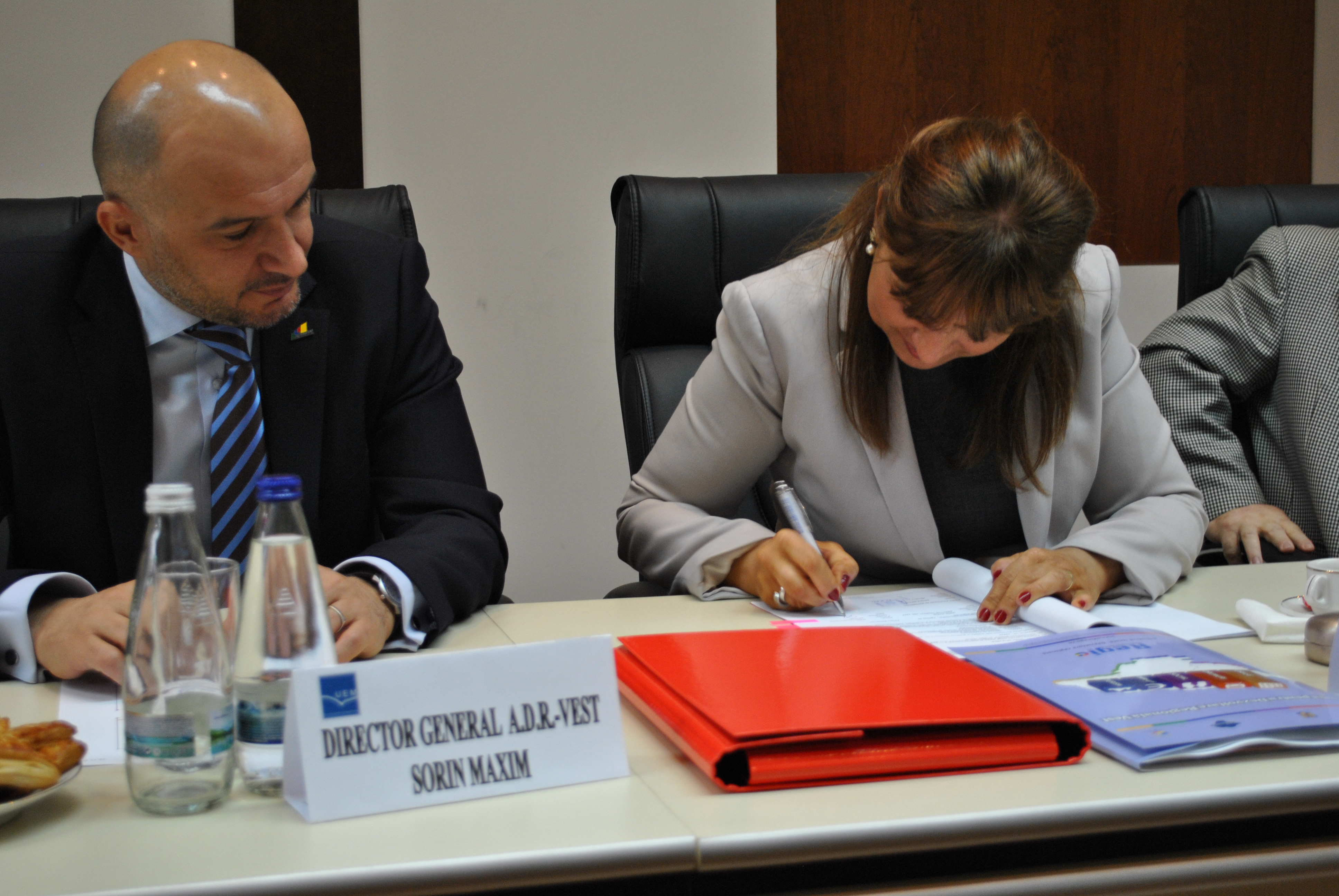 Semnarea contractului de finanțare s-a realizat între beneficiarul proiectului, universitatea, reprezentată de rectorul Doina Frunzăverde, și un organism interimar pentru Regio, Programul Operațional Regional, anume Agenția pentru Dezvoltarea Regională de Vest, prin directorul general, Sorin Maxim.