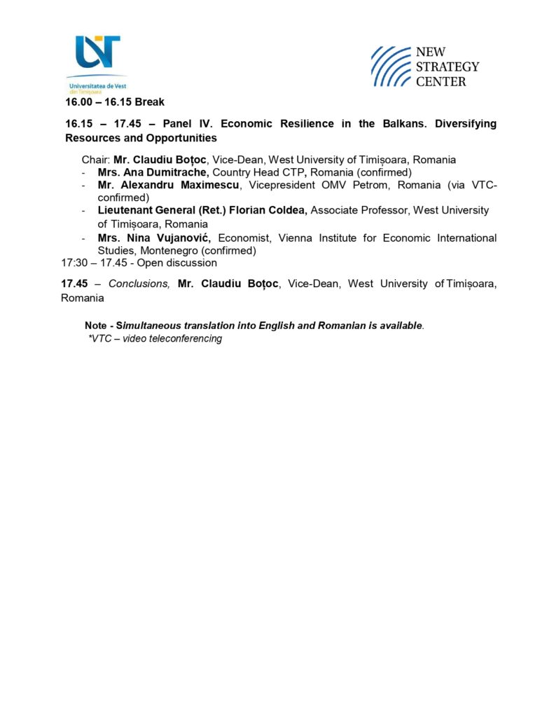 Conferința va fi transmisă live și poate fi urmărită accesând website-ul UVT și al New Strategy Center.