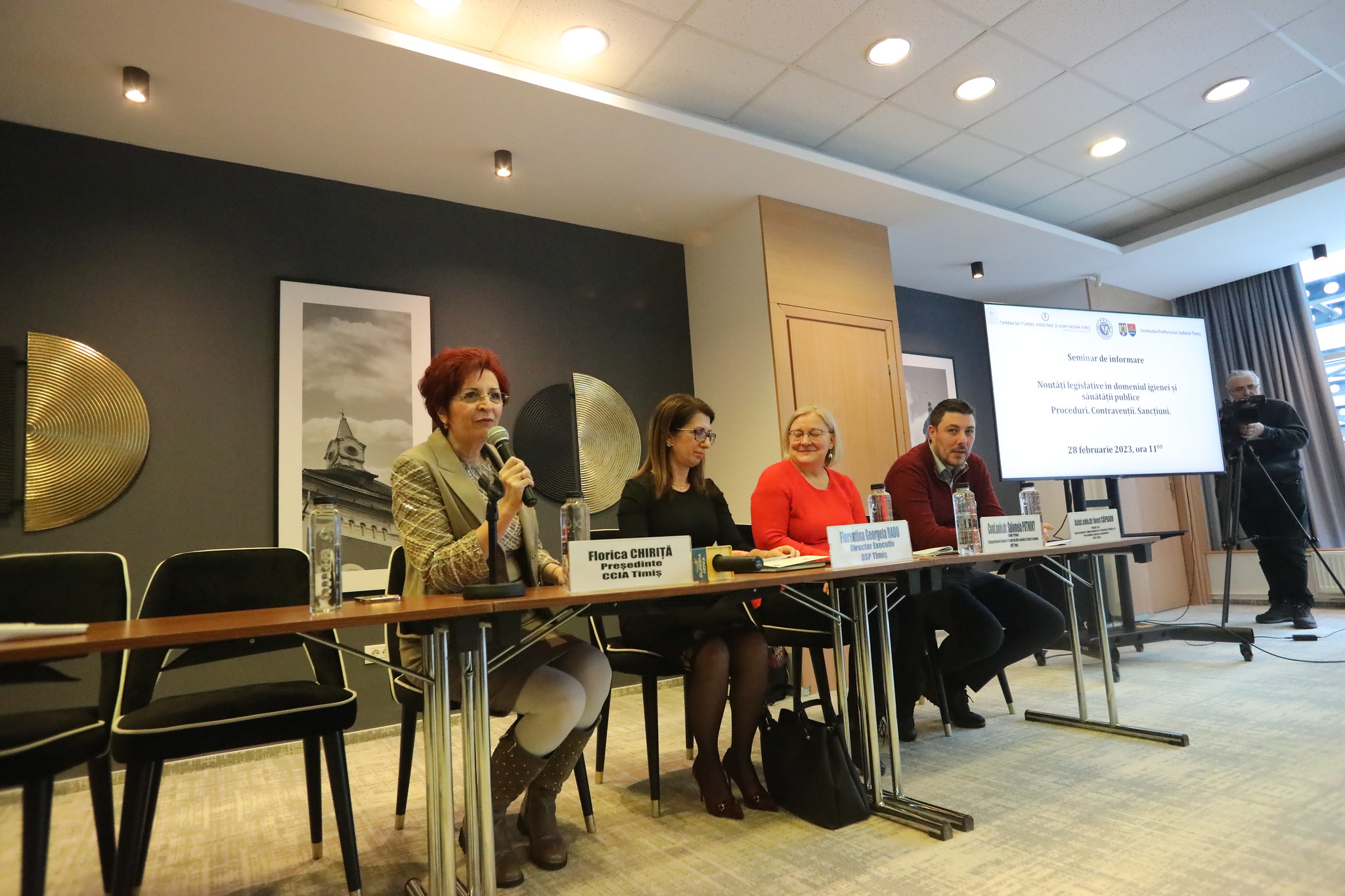 „Ne bucurăm să fim partenerul Camerei de Comerț și să participăm și în acest an la sesiunile de informare și de îndrumare a agenților economici, mai ales că în ultima perioadă, atât anul trecut, cât și la începutul acestui an au intervenit niște modificări legislative în domeniul nostru de activitate. S-au modificat taxele și alte chestiuni privind organizarea cursurilor de igienă. Pentru noi este important să ne întâlnim cu agenții economici din județul Timiș pentru că, în această perioadă, DSP a implementat un serviciu de programări online pe activitatea de avize și autorizații. Considerăm că este important să aflăm și părerea agenților economici despre cum văd ei că funcționează acest program. De asemenea, în Timișoara se vor organiza anul acesta multe activități culturale, ne așteptăm să avem un aflux de turiști, așa că este important ca agenții economici să fie partenerii noștri și să aibă grijă de sănătatea publică, să fie deschiși la tot ceea ce presupune acest an. Vor fi foarte multe provocări la care va trebui să facem față atât noi, cât și ei. Cred că este important să fim parteneri și să avem un dialog pe tot ce ține de sănătatea publică.”, a declarat Florentina Radu, directorul executiv al DSP Timiș.