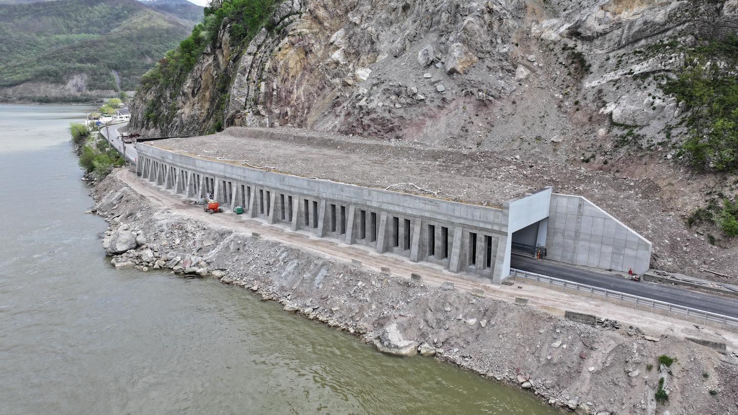 Lucrările la structura de ziduri de retenție pentru protecție suplimentară de pe Clisura Dnării sunt gata. Antreprenorul mai are de executat marcajele rutiere, de montat parapet și de finalizat lucrările la gabioane.