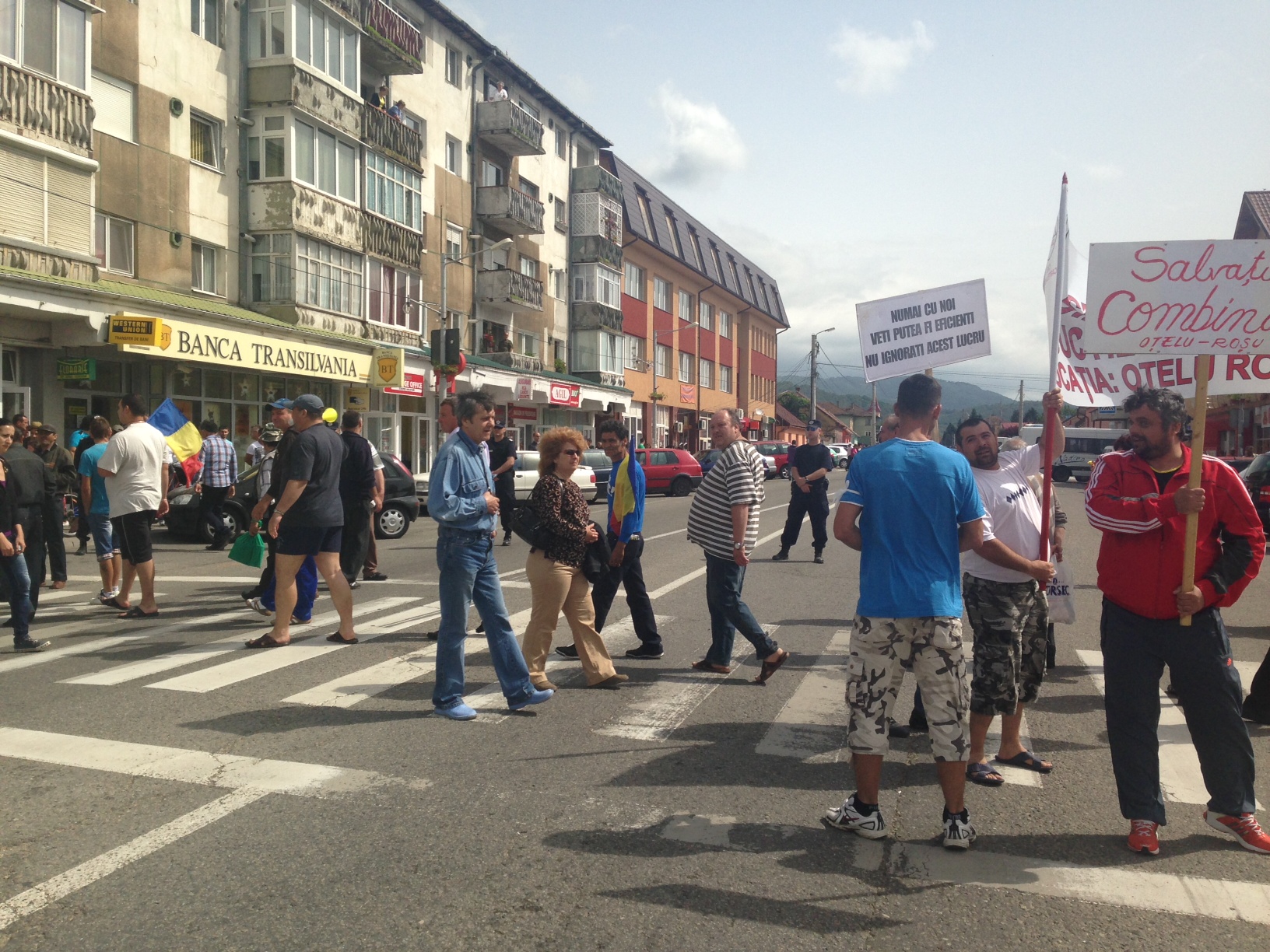 În momentul de față, sindicaliștii au plecat din fața societății și urmau să ajungă în centrul orașului dar s-au oprit în mijlocul drumului. Așa cum au amenințat, au blocat circulația pe drumul național ce leagă Oțelu Roșu de Hațeg. Jandarmii și polițiștii privesc neputincioși cum oamenii fac ture pe trecerea de pietoni de pe drumul național și întorc mașinile și autobuzele care circulă. Sunt hotărâți să nu părăsească locația și doresc să le reamintească reprezentanților Guvernului faptul că economia din zonă este dependentă de funcționarea combinatului Ductil Steel.