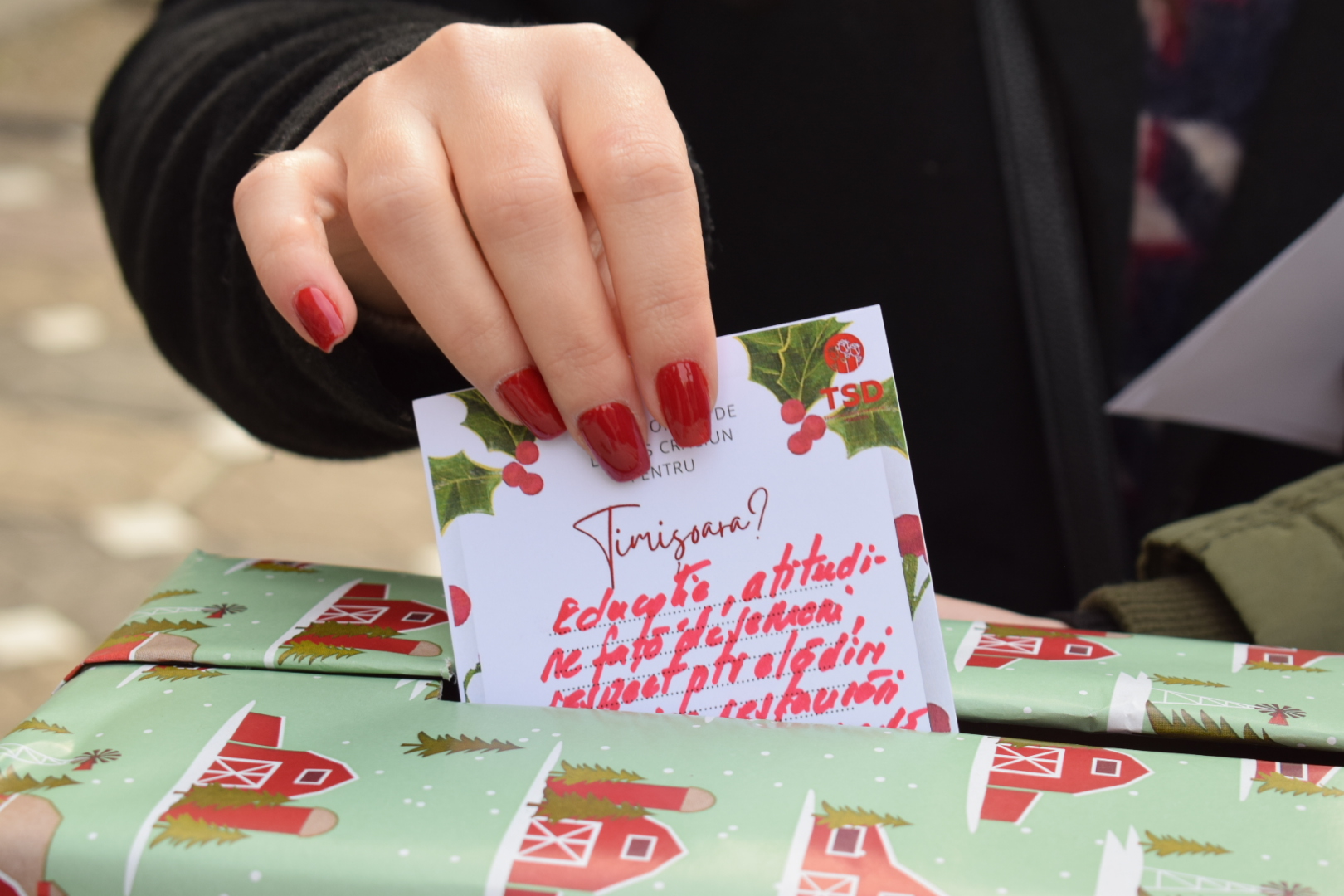 Tinerii din PSD au mers în centrul orașului unde au îndemnat cetățenii Timișoarei să scrie o scrisoare de Crăciun cu dorințele lor pentru oraș. Printre problemele semnalate de cetățeni au fost serviciile precare de salubritate, oferta culturală deficitară, strategia falimentară a autorităților de decongestionare și fluidizare a traficului, spun cei din TSD, numărul insuficient al locurilor de parcare și proasta gestiune a transportului în comun.