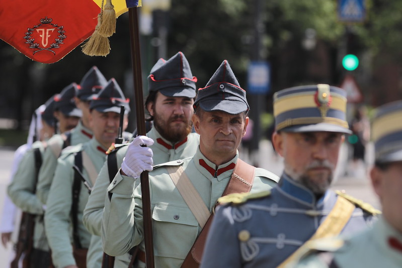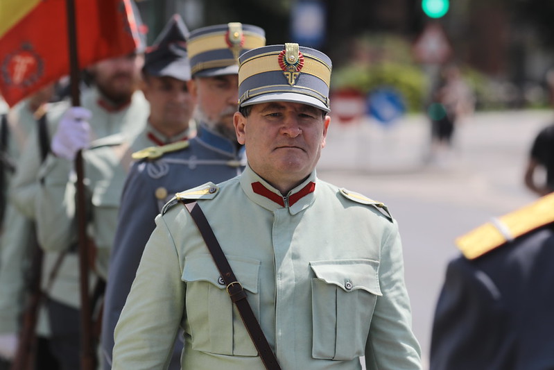 „Eu sunt președintele Asociației de Reconstituiri Istorice Timișoara. De Ziua Eroilor, în fiecare an de când avem aceste uniforme participăm la sărbători, acum am fost invitați de colegii din armată, dar noi în alte zile am făcut-o pe cont propriu. Uniformele pe care le purtăm sunt ale structurilor din acea vreme, din Primul Război Mondial, uniforme cu care a intrat și colonelul Virgil Economu în Timișoara în 3 august. Ne veți vedea în aceste uniforme și de Ziua Timișoarei și am avut și plăcerea ca de Ziua Națională, exact în fața Catedralei Mitropolitane, să deschidem defilarea. Comanda Garnizoanei Timișoara ne-a oferit, pentru defilare, un steag original de acum 100 de ani, de pe timpul Regelui Ferdinand. A fost pentru noi o mare onoare să purtăm acest steag.”, a declarat colonelul în rezervă Vasile Sopon pentru expressdebanat.ro.